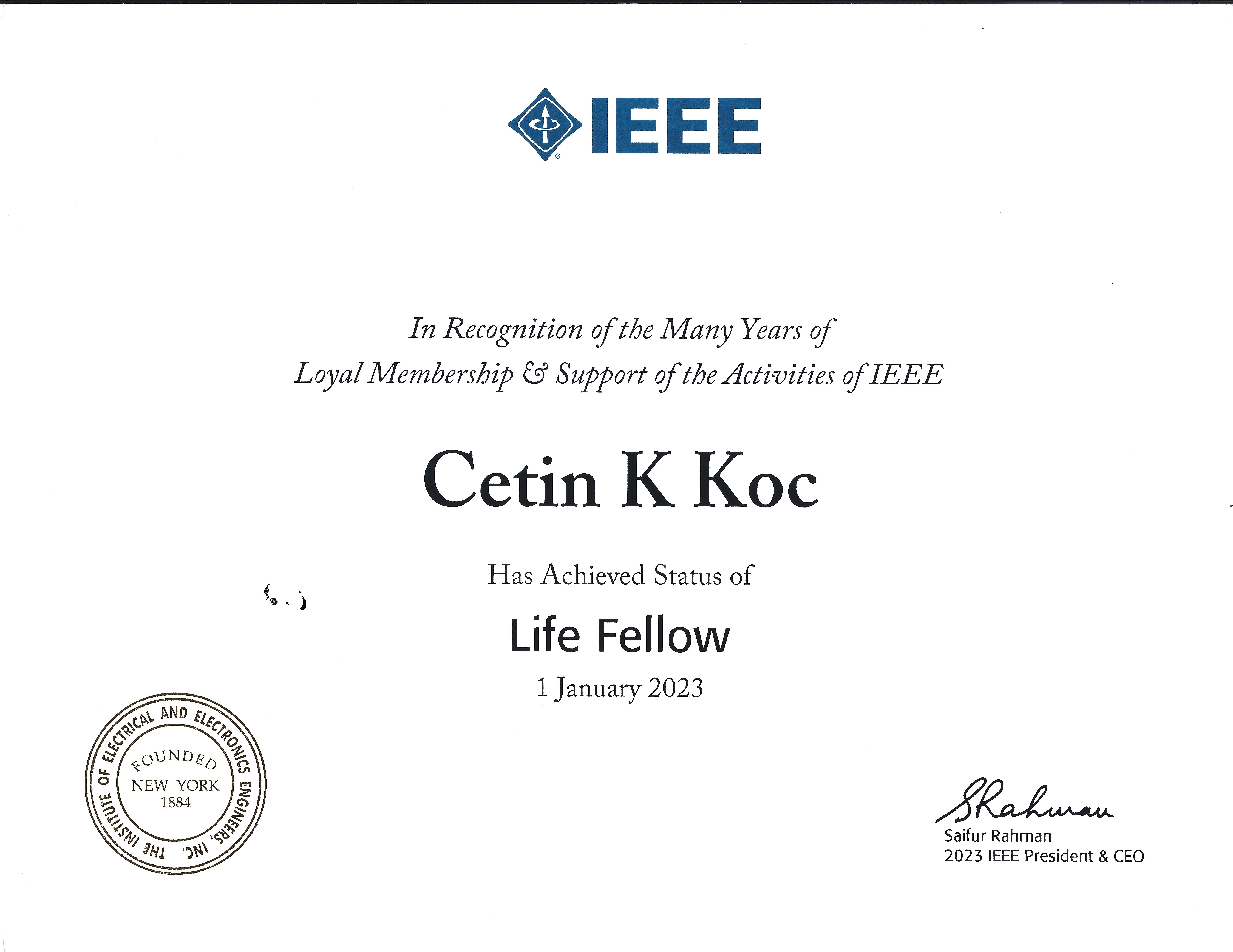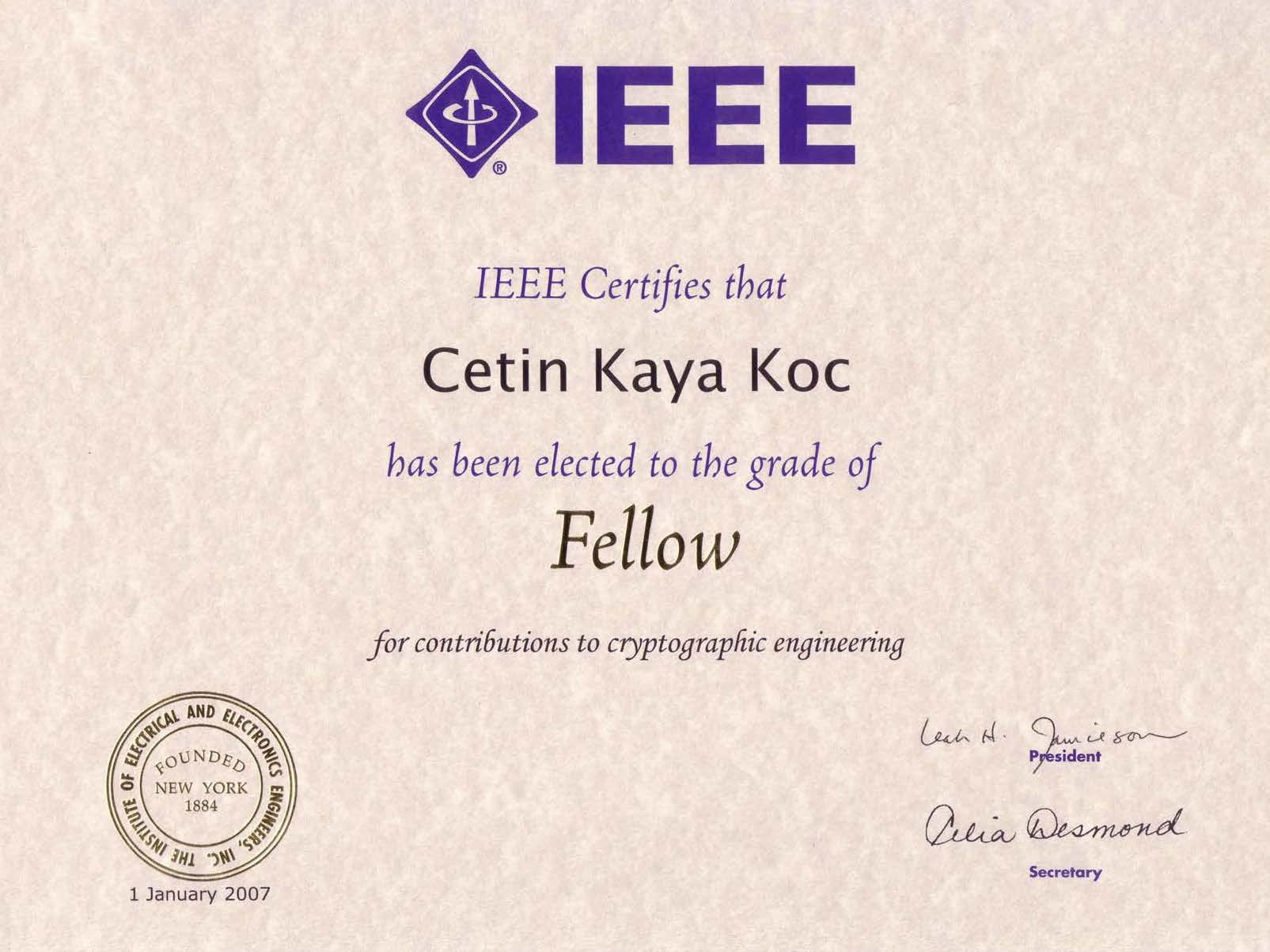 IEEE Fellow for Contributions to Cryptographic Engineering, January 2007